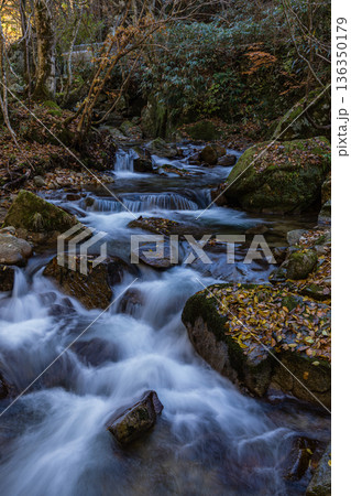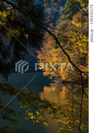 芦津渓谷の三滝ダム湖の紅葉 鳥取県八頭郡智頭町渓谷 鳥取県八頭郡智頭町
