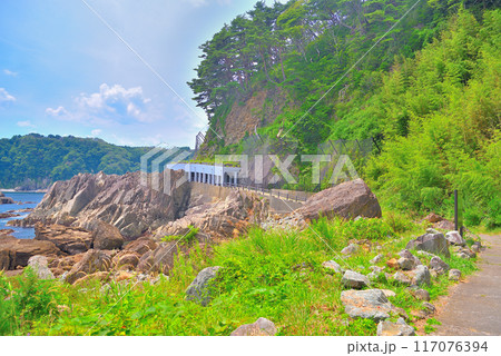 東北・三王岩・三王岩を間近に眺められる三王園地遊歩道の眺め・岩手県宮古市