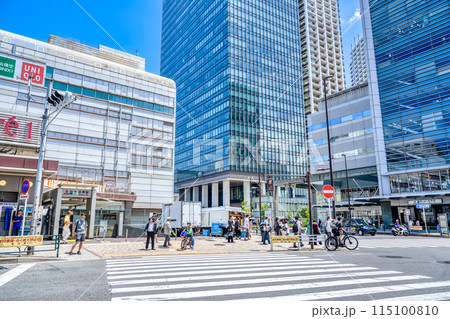 東京 田町駅周辺の風景 青空に映える高層ビル群