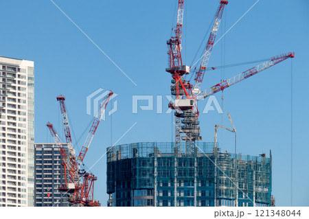 タワークレーンを使って建築中の超高層 タワーマンション