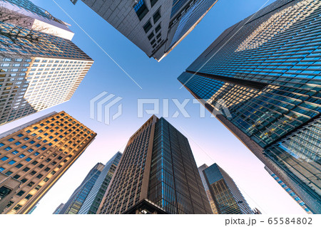 日本の東京都市景観 金融・経済の中心、丸の内のオフィス街。三菱UFJ信託銀行などを望む