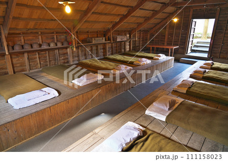 鹿児島県、知覧の特攻隊の宿舎三角兵舎の内部