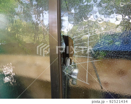 泥棒に割られたガラス窓