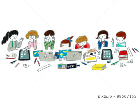 小学校の授業にまつわる手描きイラスト(カラー/輪郭線なし)