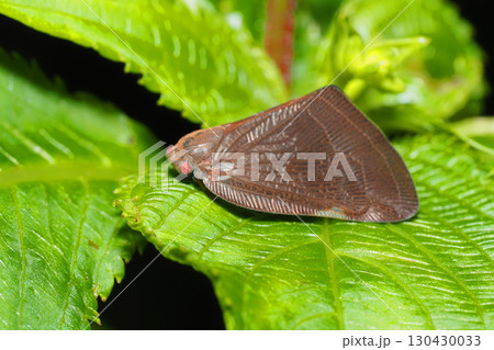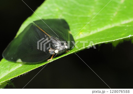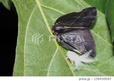 アジサイの花に乗るチュウゴクアミガサハゴロモ
