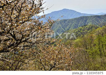 春の丹沢 丹沢主脈 マメザクラ咲く竜ヶ馬場より大山を望む