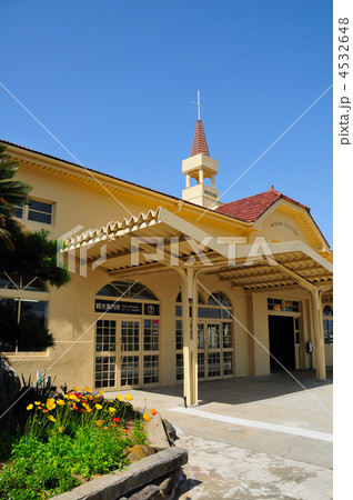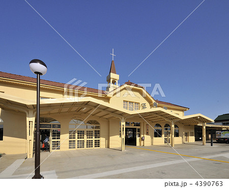 日本の藤沢都市景観 江ノ電 江ノ島駅。三角屋根が印象的…