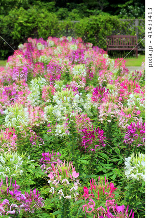 酔蝶花と呼ばれるクレオメの桃と白と紫色の花
