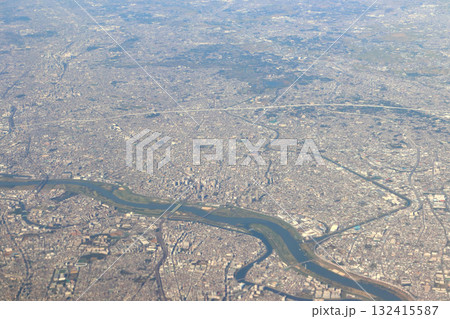 埼玉県川口市の荒川堤からの空模様(三領水門方面上空)