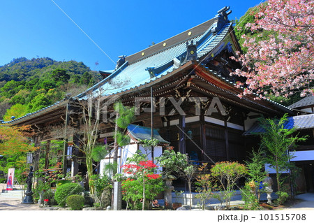 【広島県】晴天の大聖院の観音堂と桜(宮島)