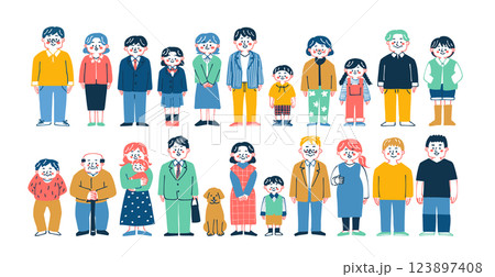 子供から高齢者まで様々な世代の人たちの上半身イラストセット