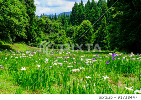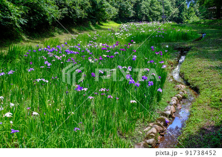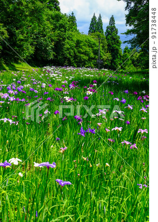 新潟県南魚沼市小栗山 上の原公園内菖蒲園の花しょうぶの景色