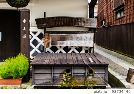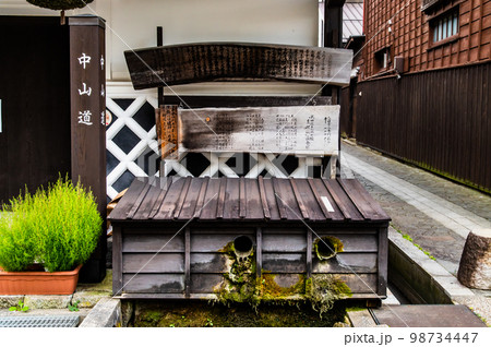 木曽福島宿 上ノ段地区の町並みと用水