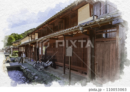 水彩画風 熊川宿 中ノ町の町並み 福井県若狭町