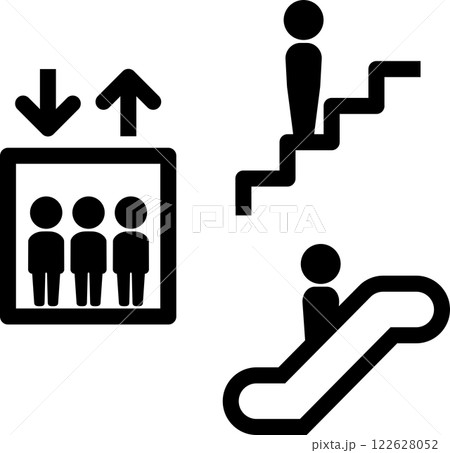 階段を上り下りするシンプルなピクトグラムのアイコン