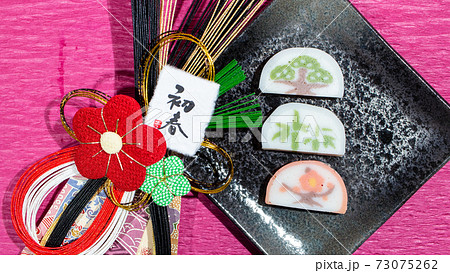 日本の伝統食材、お正月用のカマボコ、松竹梅、&お正月飾り