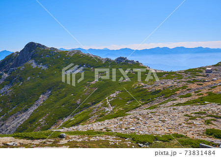 長野県上伊那郡の秋の木曽駒ヶ岳山頂から南側(三沢岳,南駒ヶ岳など)を見る