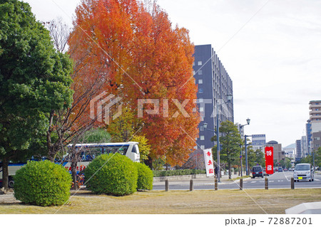 市街地の紅葉風景です。護国神社前にある上八丁堀の官庁街です。広島県