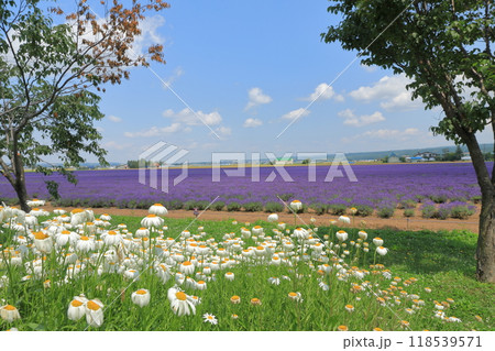 ファーム富田ラベンダーイーストの美しいラベンダー畑の風景