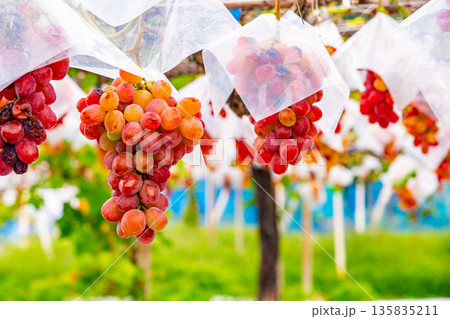 (山梨県)御坂町、食べ頃になった葡萄園のブドウ