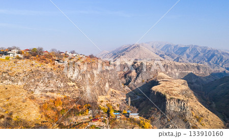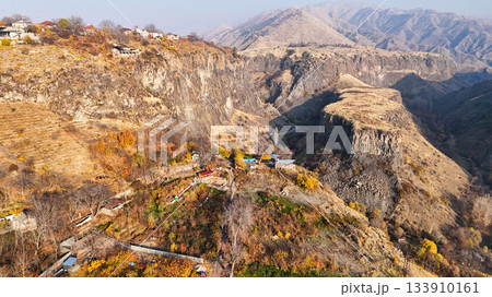 above view of Garni village in Azat Gorge, Armenia