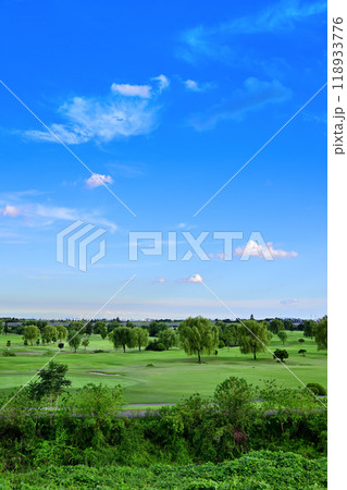 青空の夏空とゴルフ場の風景 上江橋からの眺め