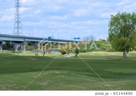 ゴルフ場 荒川河川敷 上江橋付近から真夏の風景