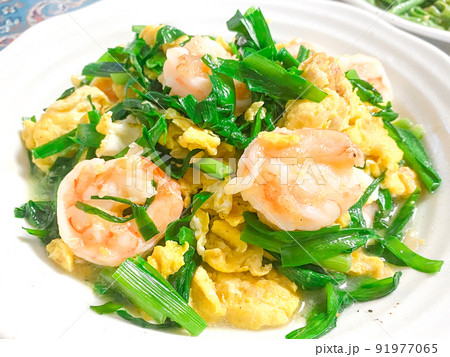中国上海料理・蝦仁韮菜炒鶏蛋(エビと韮の卵炒め)