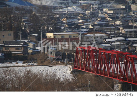 千曲川を渡る上田電鉄別所線(まるまどりーむ号Mimaki号)