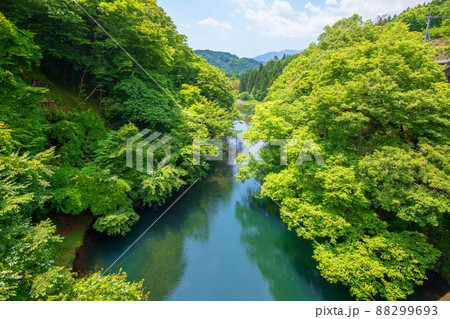 小黒川 渓谷美 渡良瀬川支流 上田澤橋から下流方面の眺め 黒保根町 初夏の風景
