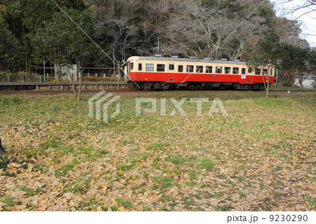 紅葉の夫婦銀杏とレトロ列車 小湊鉄道 上総大久保駅