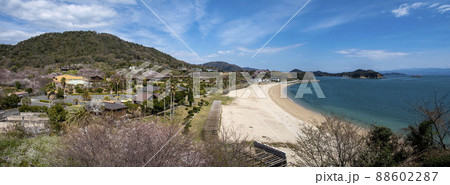 桜が咲く広島県呉市上蒲刈町の県民の浜