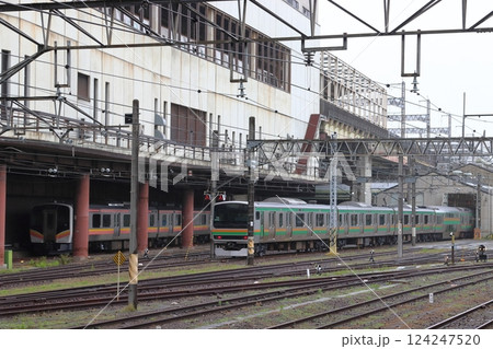 JR大宮工場にて改造中の上越線E129系・高崎線E231系電車(埼玉県さいたま市大宮区)