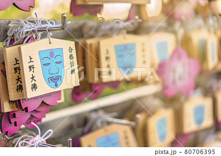 [東京・上野] 寛永寺の絵馬で書かれた合格大仏と呼ばれる上野大佛の青い色の顔のイラスト。