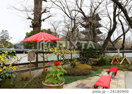 冬ぼたん 上野東照宮ぼたん苑 五重塔