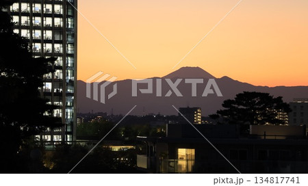 関東富士見100景に選ばれている富士見橋(東京都世田谷区)から見た富士山の夕景