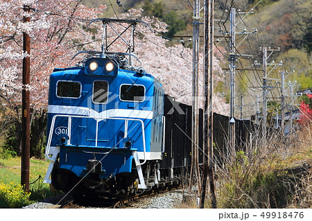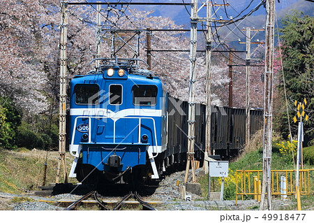 秩父鉄道貨物列車 上長瀞駅周辺(桜)
