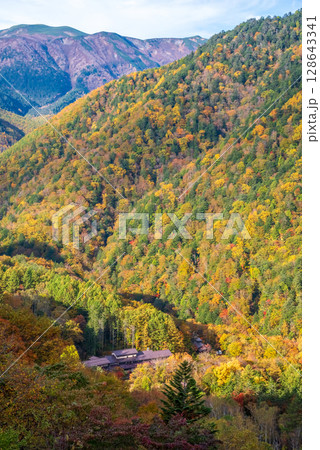 上高地乗鞍スーパー林道より望む白骨温泉(泡の湯旅館)の紅葉