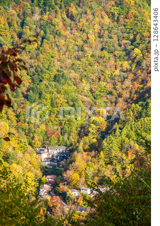 上高地乗鞍スーパー林道より望む白骨温泉街の紅葉