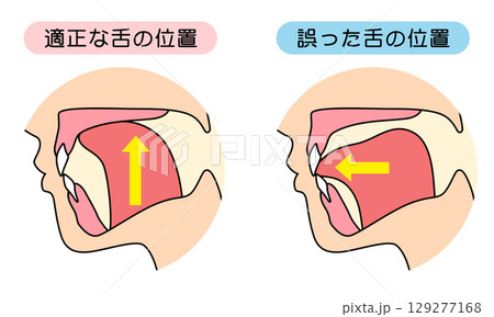 正しい舌の位置と下がっている舌の位置 ミューイング