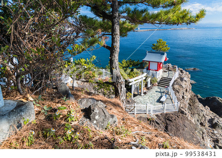 日本 高知県高知市浦戸の桂浜の竜王岬展望台から見下ろす海津見神社(竜王宮)