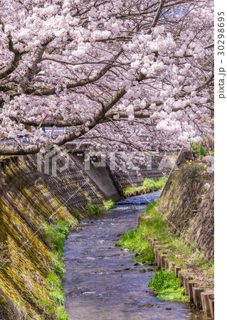 日本の春 富士吉田下吉田 入山川沿いの桜並木