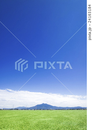 茨城県下妻市から見た筑波山 筑波山 青空 茨城県 田んぼ
