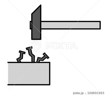 日曜大工でハンマーで釘を木材に打ち込む断面イラスト