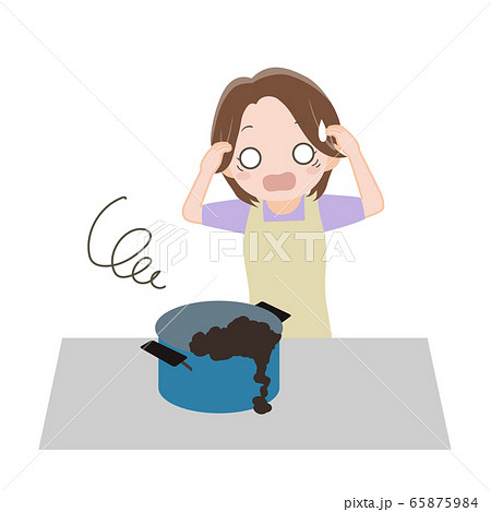料理で失敗をして慌てる女性