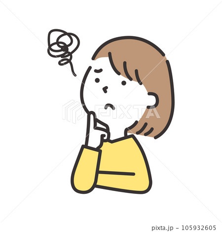 斜め上を見上げて悩んでいる若い女性のイラスト
