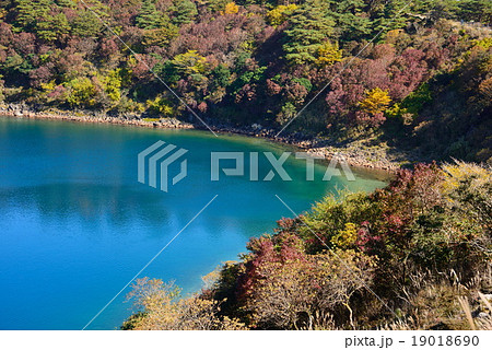 えびの高原の不動池に広がる美しい秋の紅葉