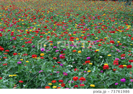 色とりどりのジニア畑