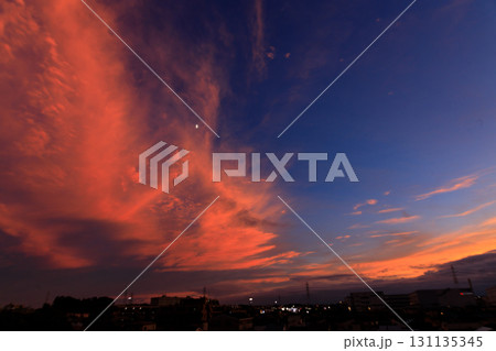 凄まじいゲリラ雷雨が通過した後の不気味な夕焼け空