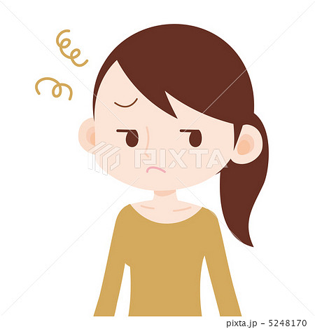 女性 上半身 不満顔
